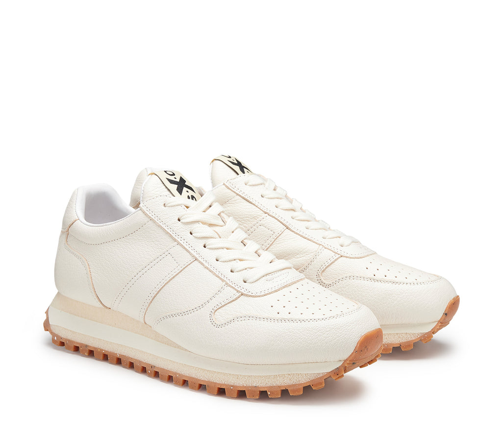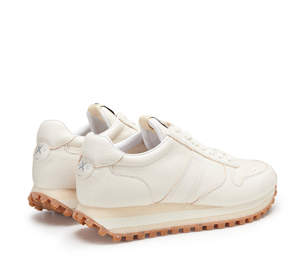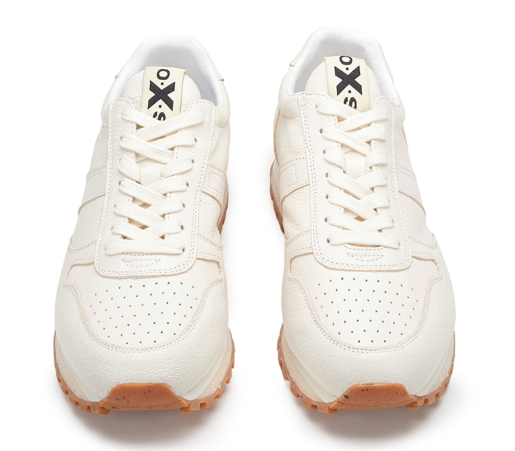 La qualità e l'approccio sperimentale al design si fondono perfettamente nell'anima di OXS. Le sneakers Greg presentano una tomaia in pelle, suola in gomma allungata sulla punta e sul tallone, contrafforte e linguetta personalizzati con il logo del brand.